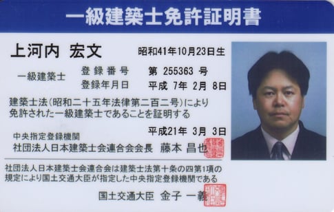 構造設計一級建築士 第3303号 平成21年3月3日 登録